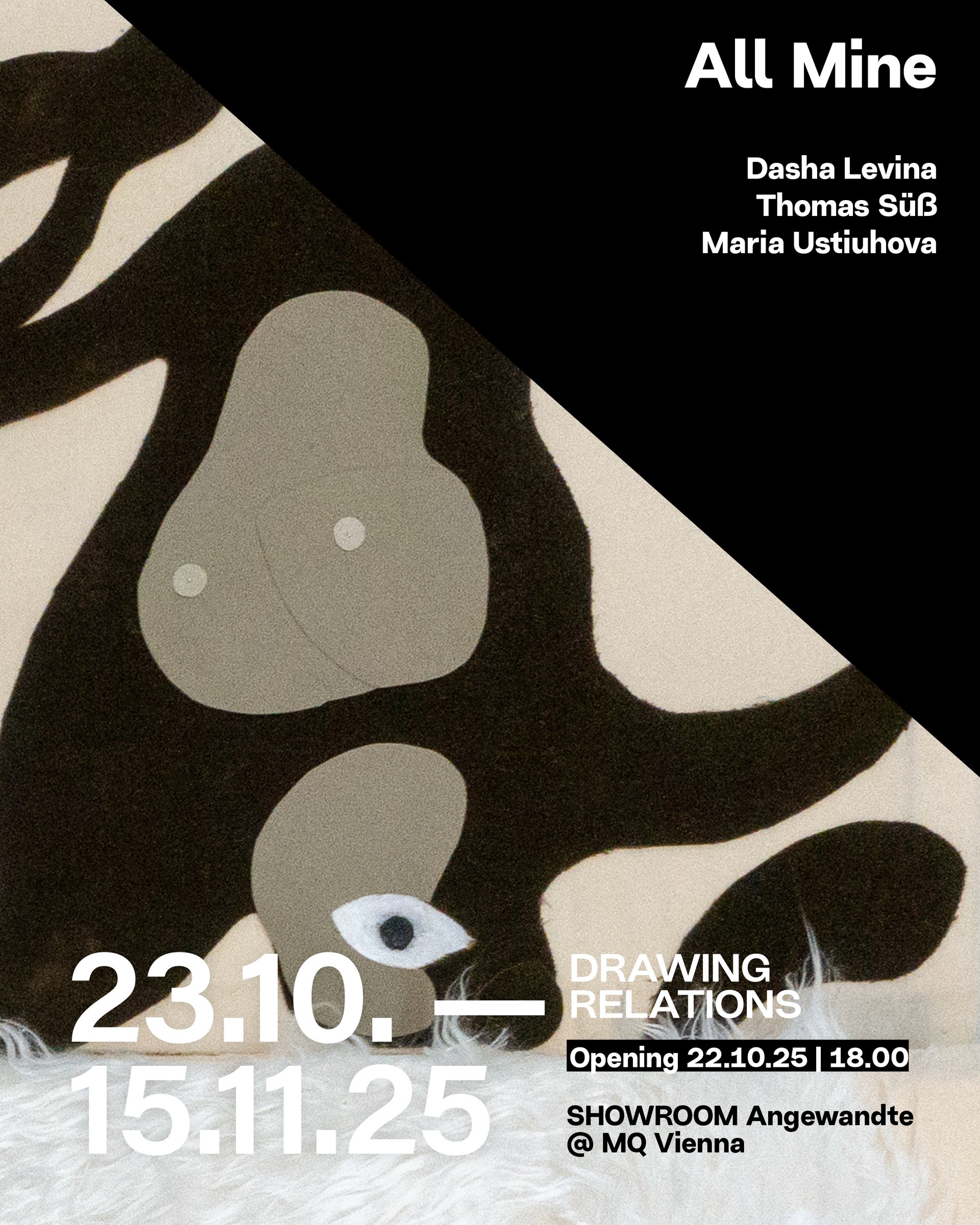 Arbeiten von Thomas Süß, Mariia Ustiuhova, Dasha Levina (Universität für angewandte Kunst Wien, Abteilungen Zeichnung & Druckgrafik und Bühnengestaltung)