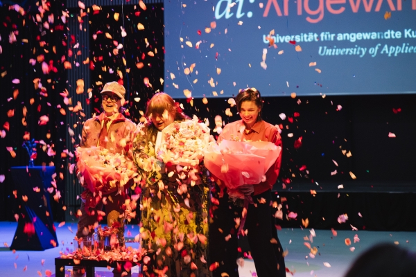 Künstler*innen-Duo Jakob Lena Knebl und Ashley Hans Scheirl in einem Festakt an der Universität für angewandte Kunst Wien